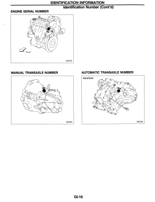 Inside this manual you will find information about general information, maintenance, engine mechanical, engine lubrication and cooling systems, engine fuel and emission control system, accelerator control, fuel and exhaust systems, clutch, manual transaxle, automatic transaxle, front axle and front suspension, rear axle and rear suspension, brake system, steering system, body, heater and air conditioning and electrical system.