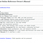 This manual contains guidelines and information about: driver and passenger safety, your vehicle at a glance, instruments and controls, authorized manuals, important handling information driving, before driving, features, warranty and customer relations, technical information, taking care of the unexpected, maintenance and a few words about safety.