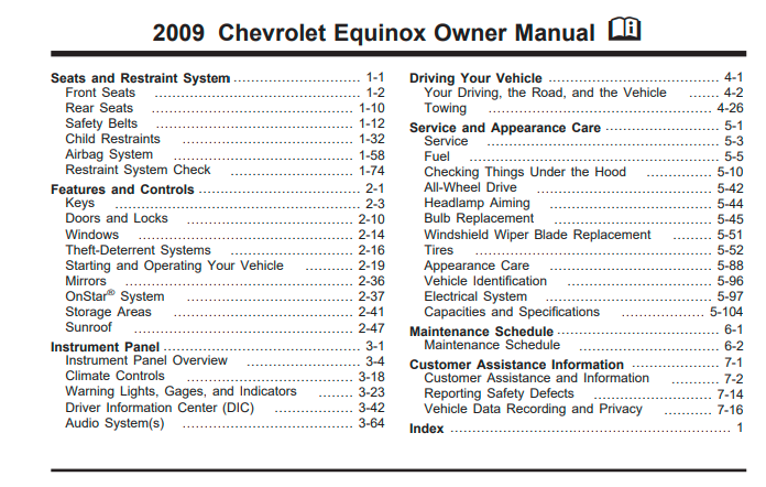 The complete 2009 Chevrolet Equinox owner’s manual with images, illustrations and guides for driving, using and maintaining the vehicle.