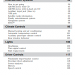 Inside this manual you will find information about customer assistance, instrument cluster, entertainment systems, climate controls, lights, driver controls, locks and security, seating and safety restraints, tires, wheels and loading, driving, roadside emergencies, cleaning, maintenance and specifications and accessories.