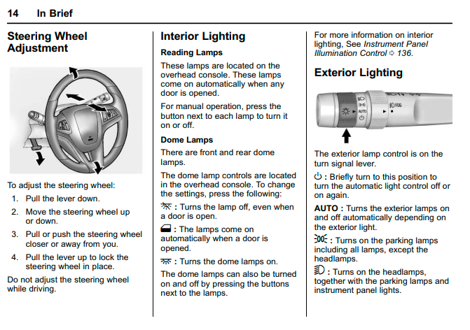 Inside this manual you will find information about reporting safety defects, in brief, keys, doors and windows, seats and restraints, storage, instruments and controls, lighting, infotainment system, climate controls, driving and operating, vehicle care, service and maintenance, technical data, customer information and OnStar.